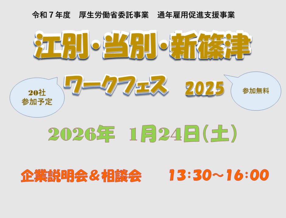 2026年1月24日(土)江別市民会館にて、企業説明会&相談会「江別・当別・新篠津ワークフェス」が開催されます。